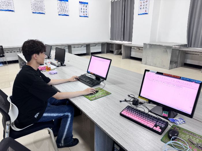 圖為實(shí)踐團(tuán)成員在服務(wù)器庫(kù)進(jìn)行調(diào)整服務(wù)器工作