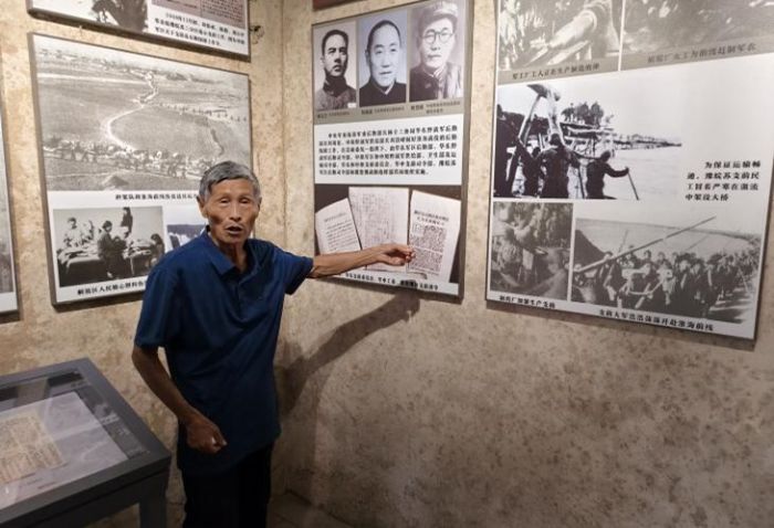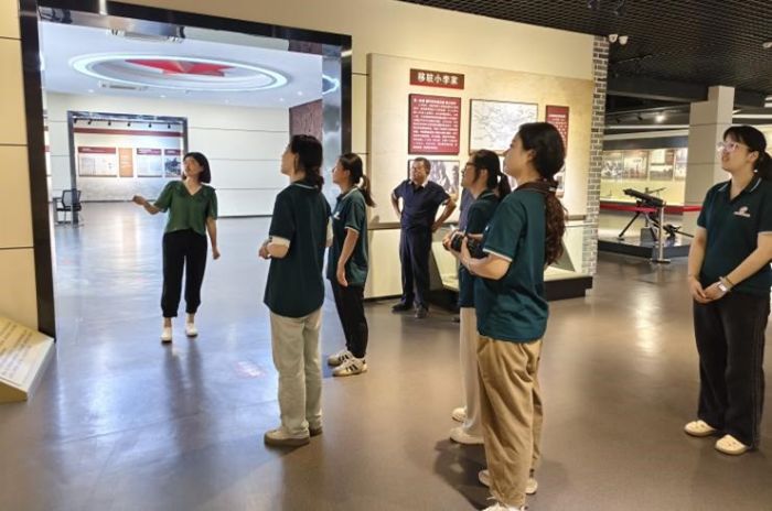 圖為“紅心潤心團(tuán)隊”在雙堆淮海戰(zhàn)役紀(jì)念館聽紅色講解員講述淮海戰(zhàn)役史