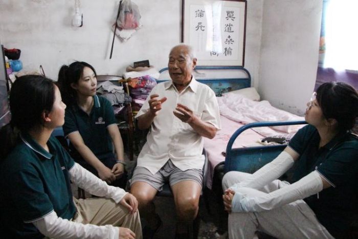 圖為“紅心潤心團(tuán)隊”對學(xué)生代表進(jìn)行家訪