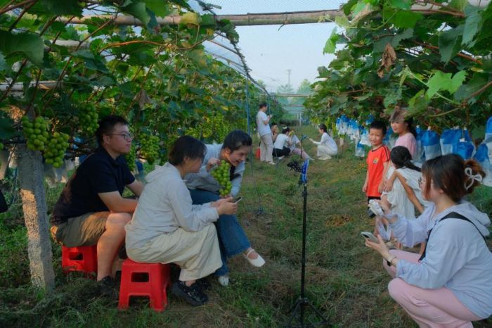 圖為實踐團成員在石坪村葡萄園進行助農(nóng)直播。曾夢媛攝