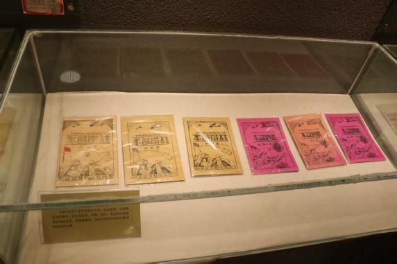 玻璃展柜里平鋪著幾個(gè)小冊(cè)子,泛黃的紙頁(yè)上還留著孩童用鉛筆涂抹的痕跡。這本巴掌大的小冊(cè)子用粗糙的草紙印刷,扉頁(yè)印著"戰(zhàn)時(shí)讀本"四個(gè)稚拙的字,內(nèi)頁(yè)既有"我們的敵人是日本帝國(guó)主義"的識(shí)字課,也有"埋地雷、炸汽車"的連環(huán)畫。最動(dòng)人的是某頁(yè)空白處,有人用紅土筆寫了歪歪扭扭的"家"字,旁邊畫著一個(gè)圓圈代表院子,里面畫著三個(gè)小人——在戰(zhàn)火紛飛的年代,課本里的文字與孩童的涂鴉,構(gòu)成了最樸素的愛國(guó)啟蒙。這哪里是普通的課本?分明是黑暗中點(diǎn)燃的火把,讓知識(shí)與信念在炮火聲中代代相傳。