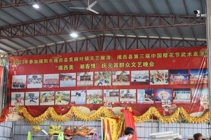 在塔頭鎮(zhèn)的街道旁,紅墻亮眼的“揭陽市吳東松獅藝文化促進會”,是潮汕非遺傳承的一方熱血陣地。這里,藏著老板吳東松對英歌舞、獅藝的執(zhí)著堅守。從熱愛出發(fā),這里不僅是英歌舞、武術、舞獅的傳習所,更承載著潮汕人對非遺文化的深情。紅墻之上,武術、英歌舞的宣傳畫,訴說著傳承的故事,吸引著一批又一批熱愛傳統(tǒng)文化的人,在守護非遺的路上并肩前行。