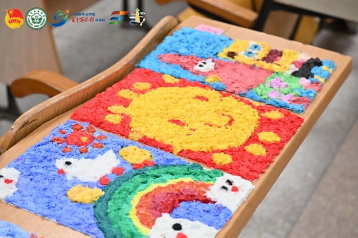 我們選擇在南澳島開(kāi)展紙漿畫(huà)教學(xué),正是考慮到當(dāng)?shù)睾⒆訉?duì)自然與海洋的親近感:“希望他們能把對(duì)家鄉(xiāng)的熱愛(ài)融入作品,讓非遺工藝與本土文化碰撞出火花。”下課鈴響時(shí),多數(shù)孩子已完成作品的主體部分,正小心翼翼地將其放到教室后排的通風(fēng)架上晾干。這些帶著孩子氣的作品,雖略顯稚嫩,卻承載著孩子們對(duì)非遺文化的初體驗(yàn)。在這堂特殊的美育課上,廢舊紙張蛻變成藝術(shù)品,非遺的種子也悄然在孩子們心中扎下了根。