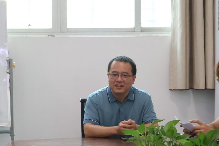 圖片3:梁雄隊長介紹塔頭鎮(zhèn)莞香產(chǎn)業(yè)基本情況