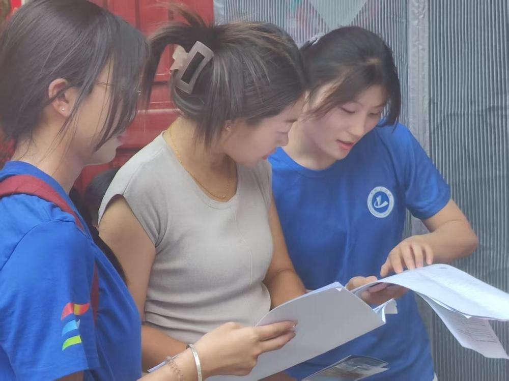 圖為團隊成員向?qū)W生家長發(fā)放宣傳手冊并解釋內(nèi)容。楊硯午 供圖