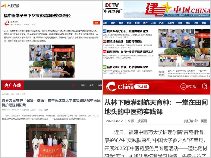 2025年7月12日至15日,福建中醫(yī)藥大學(xué)護(hù)理學(xué)院“杏苑相惜,康護(hù)‘心’生”實(shí)踐隊(duì)赴寧德市柘榮縣開展2025年中醫(yī)藥服務(wù)月活動(dòng)。實(shí)踐隊(duì)通過(guò)開展健康宣講、提供中醫(yī)康復(fù)護(hù)理服務(wù),精準(zhǔn)滿足當(dāng)?shù)厝罕娊】敌枨螅粚?shí)地走訪蘭亭家庭農(nóng)場(chǎng)、中醫(yī)藥標(biāo)本館和天人太子參研究院,系統(tǒng)調(diào)研柘榮道地藥材資源分布及發(fā)展現(xiàn)狀;創(chuàng)新探索民俗文化與中醫(yī)藥文化的融合路徑,深入挖掘非遺傳承與中醫(yī)藥文化的深厚底蘊(yùn)。