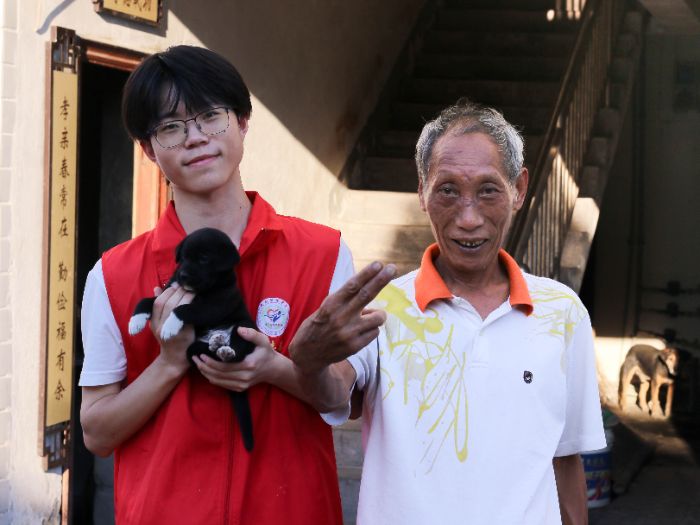 (圖為志愿者和老人合照,記錄溫情一刻通訊員胡鋅攝)