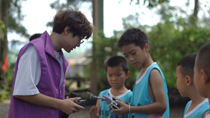 圖為實踐隊成員給小朋友們開展無人機(jī)講解。 何海洋供圖
