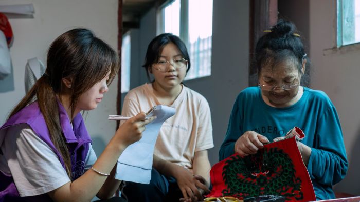 圖為采訪苗繡非遺傳承人。 劉曦供圖