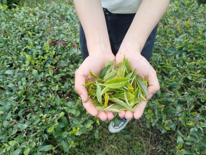 圖為調(diào)研隊(duì)員體驗(yàn)采茶過(guò)程 夏婷婷 供圖