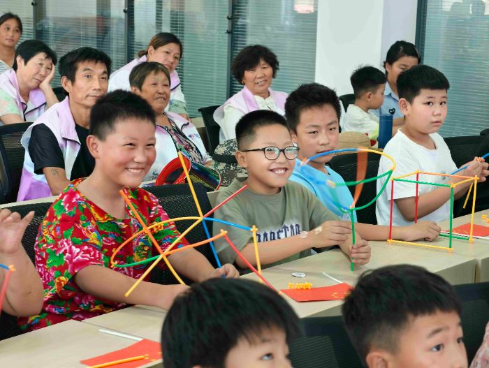 科技創(chuàng)新環(huán)節(jié)更是讓孩子們興致勃勃。實(shí)踐團(tuán)成員組織小朋友用吸管搭建模型,有的孩子搭建出了漂亮的房子,有的則搭建出了堅(jiān)固的橋梁;過(guò)濾水實(shí)驗(yàn)中,當(dāng)看到渾濁的水經(jīng)過(guò)過(guò)濾變成清水時(shí),孩子們發(fā)出了陣陣驚嘆。“我以后一定要知道這個(gè)實(shí)驗(yàn)的奇妙之處!” 底閣鎮(zhèn)中心小學(xué)的學(xué)生王嘉明興奮地說(shuō)。