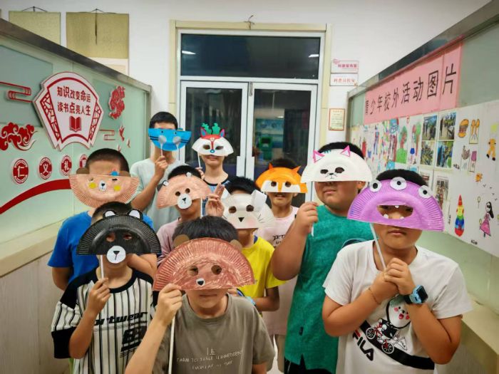 手工制作環(huán)節(jié)中,志愿者們耐心示范著剪裁、繪畫、粘貼的步驟:用剪刀將紙盤剪出合適的眼部輪廓,再用紅色彩筆給“小狐貍”畫上尖耳朵,用黃色毛線為“小雞”添上絨毛……孩子們發(fā)揮想象力,有的給“熊貓”面具涂上黑白相間的紋路,有的給“小鹿”貼上閃閃發(fā)光的星星裝飾,還有的小朋友別出心裁地將紙盤改造成“獨(dú)角獸”,在頂端粘上螺旋狀的彩色卡紙。志愿者們穿梭在孩子們中間,隨時提供幫助——幫低年級的小朋友固定松動的粘貼物,為有創(chuàng)意的設(shè)計(jì)出謀劃策,活動室里不時響起“老師,你看我的老虎牙齒像不像?”“這個膠水怎么才能不粘手呀?”的稚嫩提問,充滿歡聲笑語。