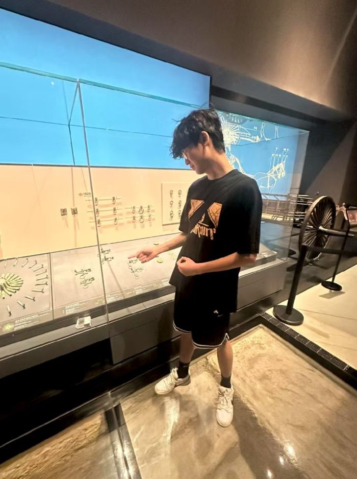 在“楚都遺珍”展廳,戰(zhàn)國(guó)時(shí)期的“越王者旨於睗劍”成為大家關(guān)注的焦點(diǎn)。劍身寒光閃爍,精美的錯(cuò)金銘文歷經(jīng)千年依然清晰可見(jiàn),我和隊(duì)員們一邊驚嘆于古代工匠巧奪天工的技藝,一邊認(rèn)真聽(tīng)講解員講述它背后的故事。通過(guò)講解,我們深入了解到壽縣作為楚國(guó)晚期都城的重要?dú)v史地位,以及楚國(guó)在政治、經(jīng)濟(jì)、文化等領(lǐng)域的卓越成就,仿佛穿越時(shí)空,回到了那個(gè)波瀾壯闊的時(shí)代。