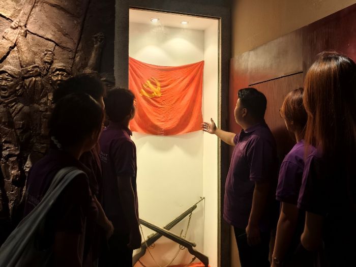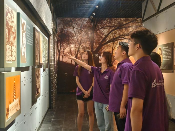 面對(duì)這座承載著烽火記憶與信仰豐碑的莊嚴(yán)博物館,實(shí)踐團(tuán)成員們的心一下子變得滾燙而澄澈。隨著腳步邁入博物館的大門,厚重的歷史氣息撲面而來(lái),實(shí)踐團(tuán)成員懷著肅穆的心情,一字一句地閱讀展館里的英雄事跡。那些閃光的名字、那些滾燙的誓言……每一個(gè)筆畫都像仍在跳動(dòng)的鼓點(diǎn),敲擊著實(shí)踐團(tuán)成員們的靈魂。