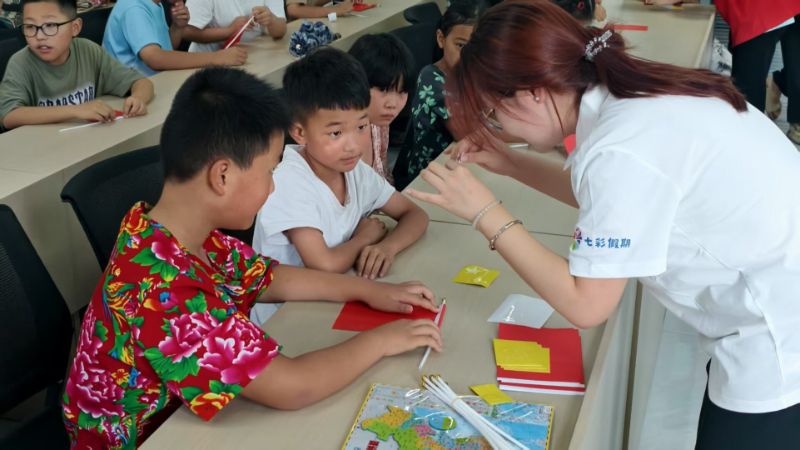隨后的手工制作環(huán)節(jié)里,志愿者手把手教孩子們裁剪紅布、粘貼五角星、勾勒黨徽線條。在一針一線、一剪一貼中,孩子們不僅鍛煉了動手能力,更在親身體驗中真切感悟到紅色精神的力量,愛國愛黨的種子悄然在心中萌發(fā)。
