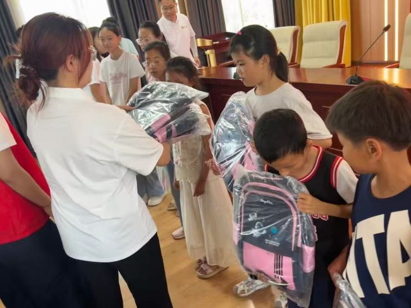 活動接近尾聲時,服務(wù)團向當(dāng)?shù)亓羰貎和栀浟司臏?zhǔn)備的小書包和文具。嶄新的書包里裝著鉛筆、橡皮、筆記本等學(xué)習(xí)用品,更承載著志愿者們的真誠關(guān)懷。拿到禮物的孩子們臉上洋溢著純真的笑容,紛紛用稚嫩的聲音說著“謝謝”,這份溫暖的互動讓孩子們切實感受到社會大家庭的關(guān)愛,也讓愛心在傳遞中不斷升溫。