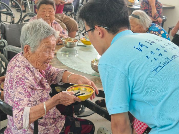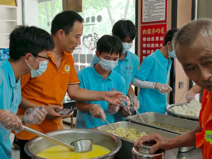 為踐行公益宗旨,傳遞社會關(guān)懷。8月13日河海大學(xué)“信水同源”團(tuán)隊來到固始縣公益志愿者協(xié)會“愛心粥屋”活動現(xiàn)場。團(tuán)隊來到了“愛心粥屋”活動現(xiàn)場為老人發(fā)放免費(fèi)的愛心午餐,為老人盛飯,在后廚準(zhǔn)備食材,刷碗洗碟子,為殘疾老人端飯,拉椅子,維護(hù)現(xiàn)場秩序,保障現(xiàn)場老人的安全。在老人吃完飯后陪他們聊天。通過現(xiàn)場的募捐箱,我們團(tuán)隊也進(jìn)行了捐款活動,錢雖然少,但是個人的力量是微小的,重要的是讓更多的人參與到這次活動,幫助老人。通過與會長趙新喜的交流中,了解到愛心粥屋2018年3月14日成立,起初發(fā)放免費(fèi)的周一到周五的早餐,后來調(diào)整為周二周三發(fā)放免費(fèi)午餐。受眾群體主要為殘疾人,60歲以上的孤寡老人,拾荒者,流浪漢等等。協(xié)會也開展了“固始縣愛心粥屋”“一對一助學(xué)”“衣舊情深,愛在固始”等常態(tài)化重點公益項目;也發(fā)放老人防走失手環(huán),預(yù)防老年人的走失;不定期給貧困戶送米送油,保障其基本生活;免費(fèi)幫老人修理頭發(fā),量血壓,觀察老年人的身體健康狀況;同時在疫情期間也積極組織消殺活動,保障社區(qū)居民的生命安全。鰥寡孤獨(dú),皆有所養(yǎng)。通過這次的公益活動,我們要學(xué)習(xí)趙會長等人身上“奉獻(xiàn)、友愛、互助、進(jìn)步”的志愿者奉獻(xiàn)精神,盡可能地為弱勢群體提供幫助,更重要的是傳承這份善意與溫暖,呼吁更多的人參與類似的活動,以實際行動關(guān)愛關(guān)心老人,延續(xù)這份善意與溫暖。