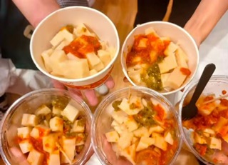 在周邊社區(qū)考察后,實(shí)踐團(tuán)解鎖特色體驗(yàn)——品嘗米豆腐。鐘同學(xué)、田同學(xué)介紹,米豆腐是秀山極具代表性的小吃,以大米為原料,經(jīng)磨漿、熬煮、冷卻等工序制成,搭配特質(zhì)醬料、蔥花、香菜等,口感爽滑、滋味獨(dú)特,是當(dāng)?shù)厝送暧洃浝锏拿牢丁3蓡T們圍坐品嘗,感受米豆腐在味蕾間散開的清香,聽二人講述米豆腐背后的民俗故事,比如節(jié)慶時(shí)吃米豆腐的習(xí)俗,以及它如何作為日常美食陪伴一代又一代孩子成長(zhǎng),體悟民族飲食文化對(duì)兒童成長(zhǎng)的滋養(yǎng)。