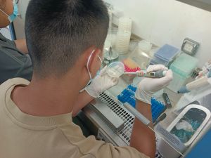 團(tuán)隊(duì)成員進(jìn)行劃菌、涂菌操作