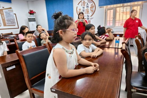 (圖為實(shí)踐團(tuán)成員烏力凡向小朋友們介紹湖湘文化)
