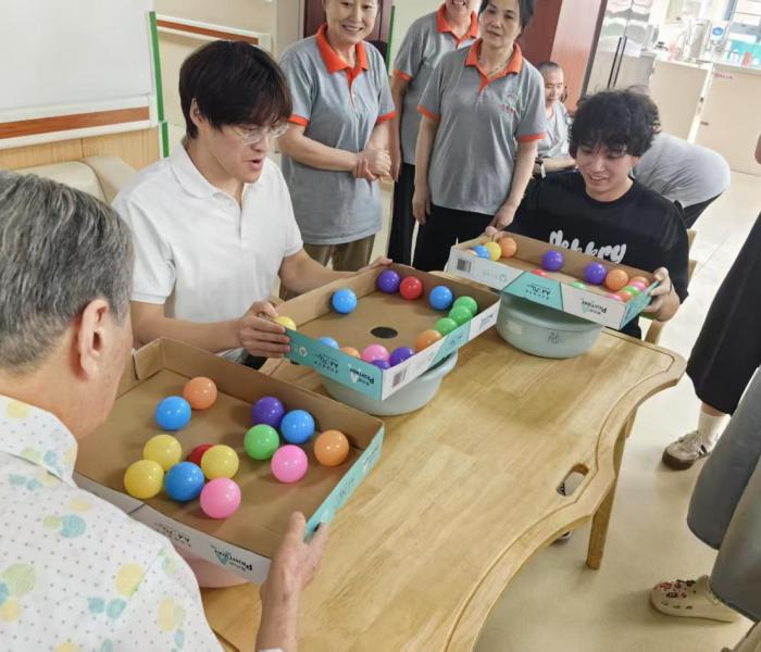 整個節(jié)目環(huán)節(jié)持續(xù)約40分鐘,音樂與互動交替,使現(xiàn)場在熱烈與溫暖之間自然切換,父親節(jié)的氛圍得以凸顯。演出結(jié)束后,志愿者與養(yǎng)老院工作人員組織了小游戲“小球進洞”。游戲器材包括輕質(zhì)塑料球和簡易入球裝置,參與者需將全部小球引入目標洞口,率先完成者勝利。