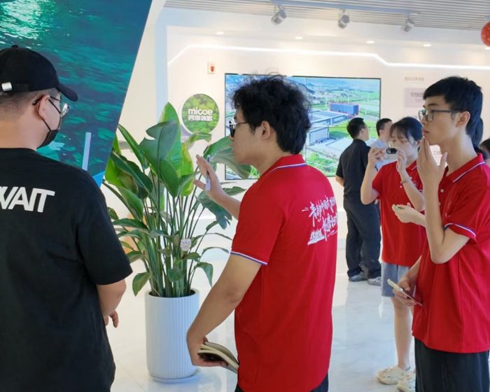 圖為實踐團成員與四季沐歌集團工作人員探討供暖器件知識。趙佳豪供圖