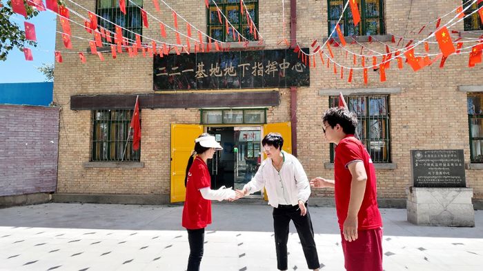 圖為實踐團成員與221基地地下指揮所負(fù)責(zé)人進(jìn)行友好交流。趙佳豪 供圖