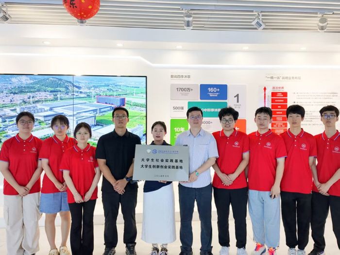 圖為實踐團與四季沐歌集團建立“大學(xué)生社會實踐基地”合影圖。趙佳豪 供圖