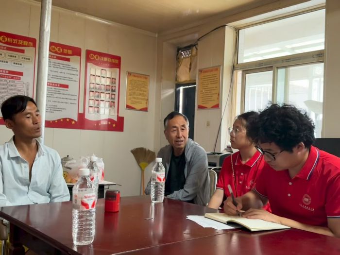 圖為實踐團成員在蘭州市鄉(xiāng)村與村委書記座談?wù)掌Zw佳豪 供圖