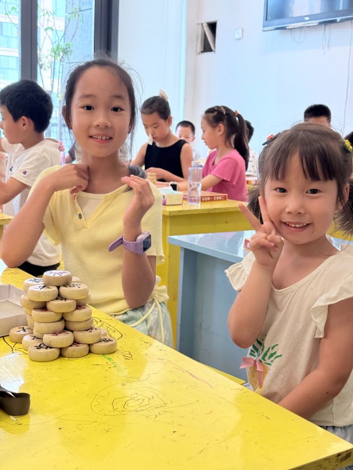 圖1 志愿者協(xié)助小朋友們完成“疊象棋”挑戰(zhàn)