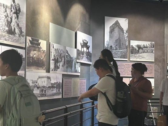 圖為實(shí)踐隊(duì)員與學(xué)生一起參觀抗戰(zhàn)歷史。 李文希 供圖