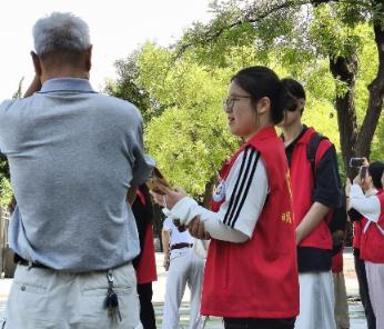 圖為宣講團(tuán)成員采訪園內(nèi)市民其對(duì)于西安革命往事的了解。郜天浩 供圖
