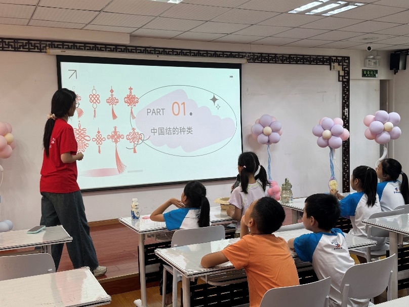 志愿者介紹中國(guó)結(jié)的樣式與工藝 劉鑫宇攝