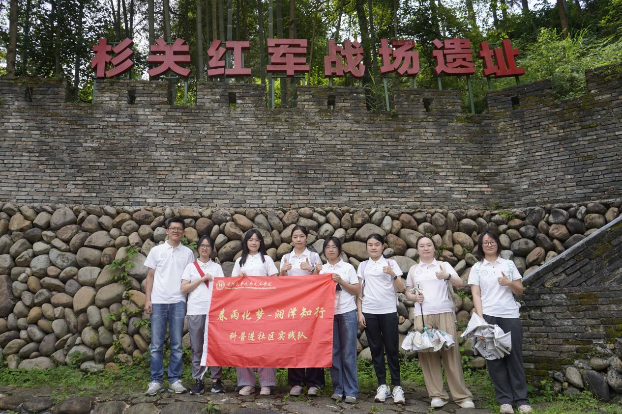 實(shí)踐隊(duì)來到了杉關(guān)村。杉關(guān)村地處福建與江西交界處,地理位置獨(dú)特,周恩來、朱德、彭德懷等革命先輩曾在此留下足跡,他們?cè)邶埦∷、休息,與群眾座談,宣傳革命思想,還曾登上城墻指揮戰(zhàn)斗。隊(duì)員們?nèi)虒WⅠ雎犞v解員的細(xì)致介紹,并不時(shí)駐足凝視每一處革命遺跡。斑駁的墻面、銹跡斑斑的武器殘骸、簡(jiǎn)陋的作戰(zhàn)工事,讓隊(duì)員們直觀感受到紅軍戰(zhàn)士在極端艱苦的環(huán)境下,為守護(hù)革命火種奮勇作戰(zhàn)的壯烈場(chǎng)景。他們深切體會(huì)到,當(dāng)年的紅軍不僅要面對(duì)糧食短缺、裝備落后等物質(zhì)層面的困境,更要承受敵人圍追堵截帶來的巨大精神壓力,但他們始終以堅(jiān)定的理想信念為支撐,在絕境中堅(jiān)守著對(duì)民族解放與人民自由的執(zhí)著追求。預(yù)備黨員、2023級(jí)本科生張優(yōu)在參觀后動(dòng)容地表示:“行走在這片浸染著革命先輩鮮血的土地上,每一處遺跡都在訴說著那段艱苦卓絕的歷史。如今的和平生活是無數(shù)革命先烈用生命換來的,新一代青年應(yīng)當(dāng)銘記歷史,將紅軍精神傳承下去。”