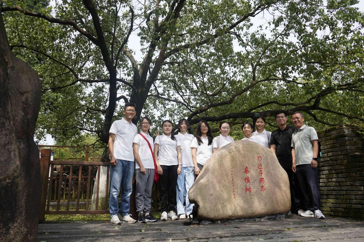 實(shí)踐隊(duì)來到了習(xí)近平同志親植樹處。1998年,“6.22”特大洪災(zāi)給光澤縣人民生命財(cái)產(chǎn)及森林生態(tài)造成嚴(yán)重破壞。1999年3月25日,時(shí)任福建省委副書記的習(xí)近平同志代表省委、省政府,為災(zāi)后重建的原中央蘇區(qū)光澤縣送來深切關(guān)懷,并在止馬鎮(zhèn)杉嶺興隆峰北麓的杉關(guān)隘口親手栽植一棵香樟樹,激勵(lì)當(dāng)?shù)馗刹咳罕娭厥靶判摹⒅亟覉@。