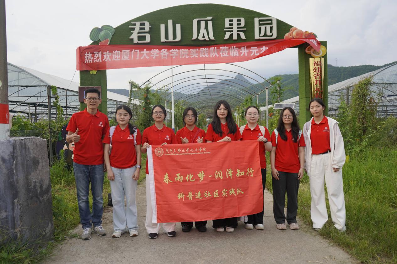 7月13日至18日,廈門大學(xué)“春雨化夢(mèng)-潤澤知行”科普進(jìn)社區(qū)實(shí)踐隊(duì)在化學(xué)化工學(xué)院侯旭教授指導(dǎo)下、化學(xué)化工學(xué)院團(tuán)委書記高世杰帶領(lǐng)下,奔赴廈門大學(xué)對(duì)口幫扶的南平市光澤縣,開展為期5天的暑期社會(huì)實(shí)踐。實(shí)踐隊(duì)一行深入光澤縣的鄉(xiāng)村社區(qū)、學(xué)校企業(yè)和紅色教育點(diǎn),通過趣味化學(xué)科普實(shí)驗(yàn)、實(shí)地參訪調(diào)研、組織座談等多種方式,運(yùn)用專業(yè)知識(shí)開展科技支農(nóng),引導(dǎo)學(xué)生關(guān)注鄉(xiāng)村發(fā)展、投身鄉(xiāng)村振興。