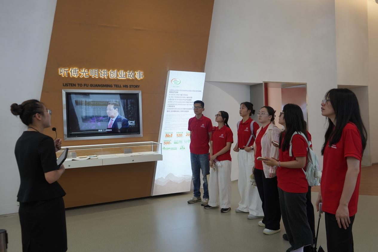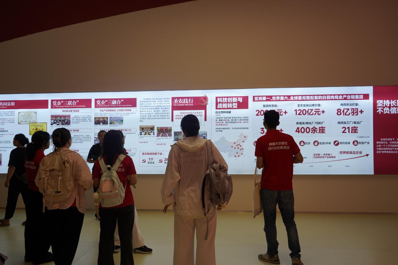實(shí)踐隊(duì)一行走進(jìn)了圣農(nóng)集團(tuán)。從宣傳視頻和展館介紹中,了解到圣農(nóng)集團(tuán)從1983年2萬元?jiǎng)?chuàng)辦養(yǎng)雞場(chǎng)起步,經(jīng)過40余年的艱苦奮斗,如今已發(fā)展成為年?duì)I收超200億元、員工數(shù)超3萬人、從養(yǎng)殖到加工的全產(chǎn)業(yè)鏈布局的農(nóng)業(yè)產(chǎn)業(yè)化龍頭企業(yè)。為了解決白羽肉雞國產(chǎn)化,圣農(nóng)集團(tuán)花費(fèi)10余年、耗資10億元培育“圣澤901”,成功擺脫雞蛋依靠進(jìn)口的局面。圣農(nóng)集團(tuán)還延伸了“綠色循環(huán)經(jīng)濟(jì)產(chǎn)業(yè)鏈”,將雞糞、谷殼等廢物轉(zhuǎn)化為有機(jī)肥和生物質(zhì)能源,在保護(hù)環(huán)境的同時(shí)實(shí)現(xiàn)了資源的高效利用。這種“資源—產(chǎn)品—廢棄物—再生資源”的閉環(huán)模式,不僅帶動(dòng)了周邊3萬多人就業(yè),促進(jìn)了縣域經(jīng)濟(jì)的全面發(fā)展,更為鄉(xiāng)村振興提供了寶貴的借鑒經(jīng)驗(yàn)。