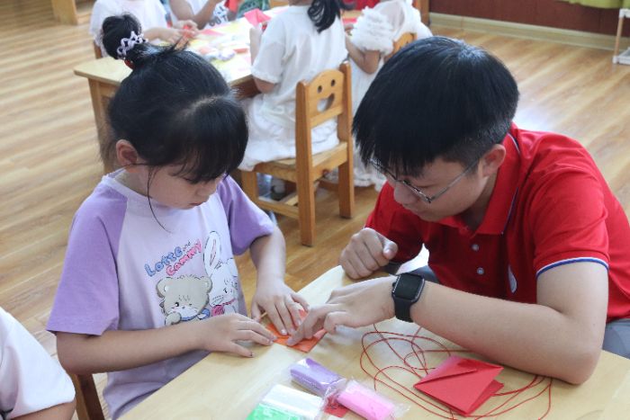 俯身教折的每一道褶皺里,藏著的是對傳統(tǒng)的敬意;耐心引導(dǎo)的每一次揉捏中,裹著的是對童真的呵護(hù)。那些被彩紙裹住的團(tuán)圓意,被彩泥捏出的巧心思,都讓傳統(tǒng)文化不再是書本里的符號。在七彩YOUNG光點(diǎn)亮的手工課堂中,傳統(tǒng)與童真撞出的火花,恰是文化傳承最生動的模樣,暈染出兒童核心素養(yǎng)生長最靈動的姿態(tài)。