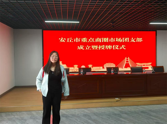 圖為實踐團成員常敬晗參加安丘商圈成立儀式