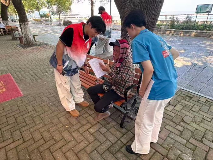 兩圖為隊員邀請游客填寫調(diào)查問卷 王磊 丁少哲 供圖