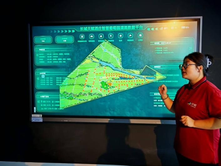 圖片一 隊員到達(dá)酒莊其中,最令人印象深刻的是酒莊中的智能監(jiān)測技術(shù),它借助物聯(lián)網(wǎng),用傳感器采集氣象(溫度、濕度、風(fēng)速等 )、土壤(濕度、養(yǎng)分 )等數(shù)據(jù),經(jīng)無線傳輸至平臺。平臺通過AI分析,呈現(xiàn)種植、水源、氣象等信息,在異常(如極端天氣 )時預(yù)警,助力精準(zhǔn)調(diào)控灌溉施肥,科學(xué)應(yīng)對極端天氣,提升葡萄品質(zhì)與管理效率,推動經(jīng)驗管理向數(shù)據(jù)驅(qū)動轉(zhuǎn)型,長城天賦作為寧夏唯一一個擁有智能化調(diào)控平臺的酒莊,實現(xiàn)了從傳統(tǒng)的經(jīng)驗管理轉(zhuǎn)向數(shù)據(jù)驅(qū)動的科學(xué)管理,極大提高了酒莊的競爭力。