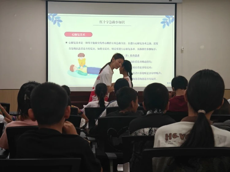 活動中,團隊成員通過圖文并茂的PPT,詳細講解心肺復蘇、海姆立克急救法、傷口包扎等急救技能,結(jié)合動畫與真實案例,讓專業(yè)知識通俗易懂。