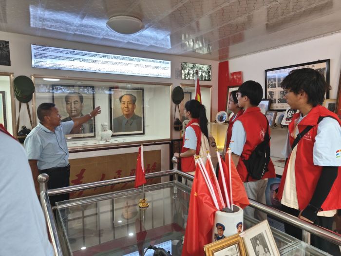 “一間紅館藏歲月,滿腔赤誠映初心。”7月11日下午,實(shí)踐團(tuán)走進(jìn)當(dāng)?shù)氐奈渖酱寮t色展覽館,雖場館不大,卻陳列著承載革命記憶的老照片、舊物件,靜靜訴說著這片土地的紅色故事。武時備館長用沙啞卻充滿力量的聲音,逐件講解展品背后的英雄事跡——從抗戰(zhàn)時期的支前故事到新時代的鄉(xiāng)村變遷,從革命先輩的奮斗歷程到當(dāng)代黨員的堅(jiān)守奉獻(xiàn)。