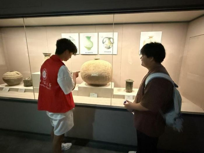 7月3日,團隊先后探訪徐州博物館、龜山漢墓及金鷹非遺工坊。在博物館,隊員們重點考察漢代文物與漢服形制,細致記錄紋樣細節(jié),為后續(xù)文化推廣儲備素材。龜山漢墓之行,團隊聚焦墓葬建筑特色,并通過采訪景區(qū)工作人員深入了解漢代歷史文化。7月4日,團隊在金鷹非遺工坊沉浸式體驗傳統(tǒng)文化魅力,向柳琴戲傳承人學習戲曲唱段,并親手體驗非遺拓印技藝。隊員李彥磊表示:“親手制作拓印作品,讓我對傳統(tǒng)文化的魅力有了更深切的認同。”團隊還就拓印技藝的創(chuàng)新發(fā)展展開討論,提出“拓印+盲盒”等文創(chuàng)方案,獲得傳承人的肯定。