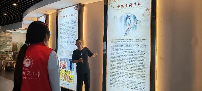 圖為講解員向團隊成員介紹柳編的歷史(數(shù)學與統(tǒng)計學院董亞文供圖)