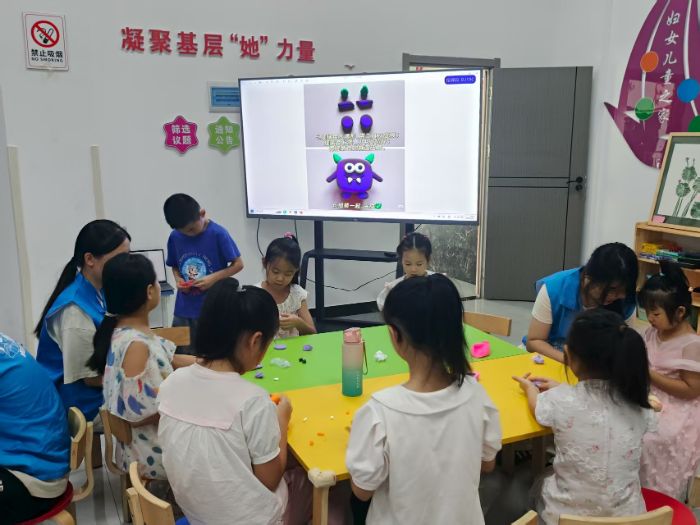活動開場,志愿者借助大屏幕展示“漂亮的顏色”主題課件,畫面中五彩的花朵、絢爛的彩虹、繽紛的卡通形象依次呈現(xiàn)。志愿者站在屏幕旁,用生動有趣的語言引導孩子們觀察:“小朋友們,快看看這些漂亮的顏色,像不像把春天的花園、雨后的天空都裝進來啦!”瞬間點燃孩子們的好奇心,大家踴躍舉手,分享自己對不同顏色的喜愛與感受,開啟色彩認知的趣味大門。