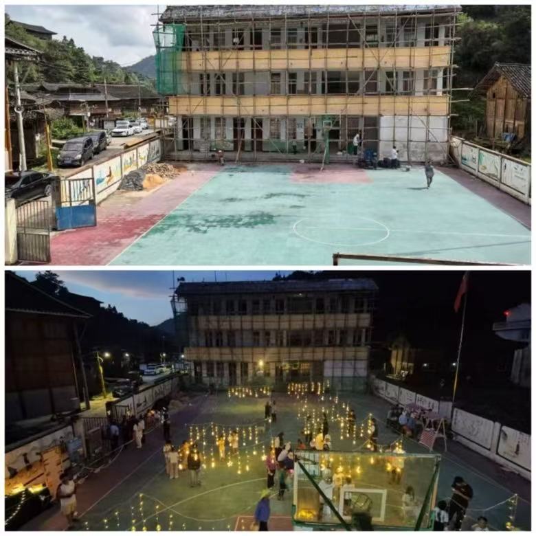 (圖為鄉(xiāng)村小學(xué)環(huán)境美化前后對比圖)