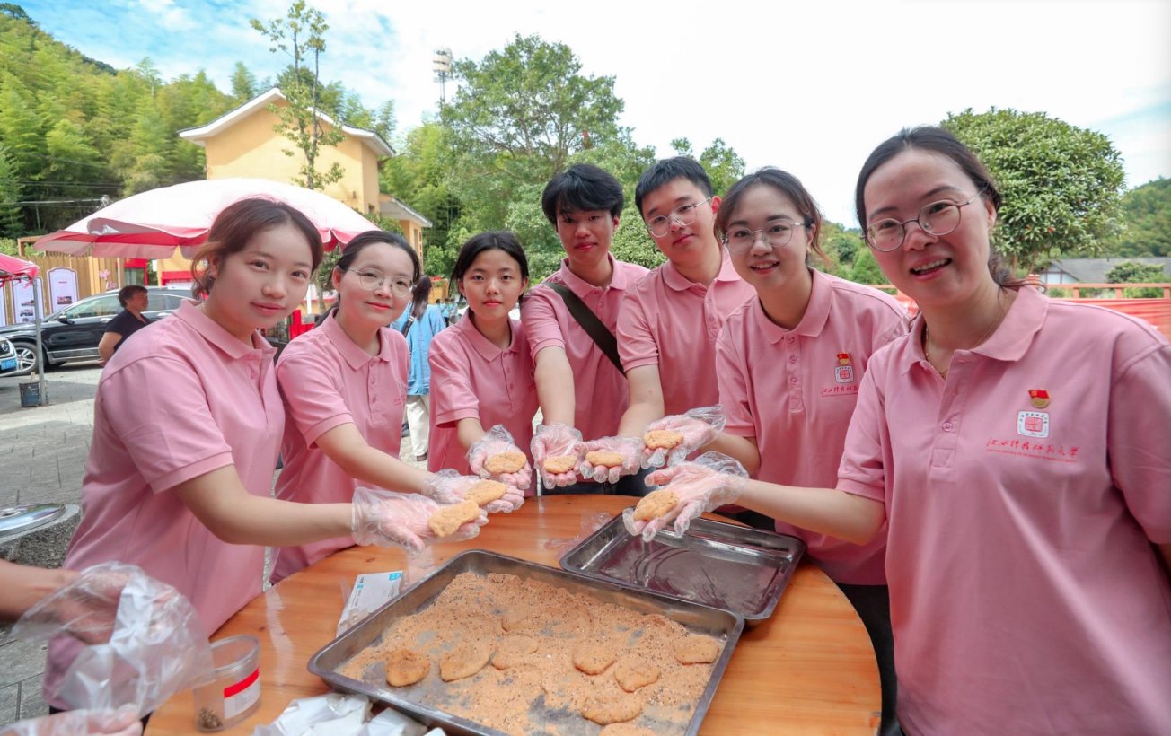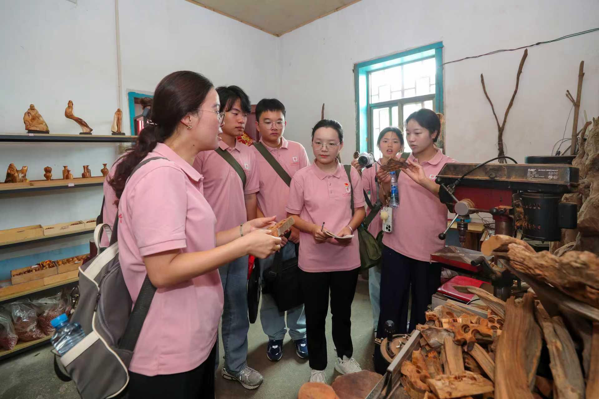 “嘿呦,嘿呦!”在陣陣號(hào)子聲中團(tuán)隊(duì)抵達(dá)紅軍烈士后代左秀發(fā)家的小院——當(dāng)年總書記親手打過(guò)糍粑的地方。隊(duì)員們掄起木槌體驗(yàn)打糍粑。熱氣騰騰的糯米香氣四溢,正如村民紅火的日子,“糍粑越打越黏,日子越過(guò)越甜”。屋內(nèi)竹屑輕飛,胡艷霞正在使用機(jī)器雕刻精美的竹筒作品,每一刀都是文化與生計(jì)的融合,是“綠水青山就是金山銀山”的生動(dòng)實(shí)踐。隊(duì)員們品嘗著自己親手制作的糍粑,欣賞著精美竹雕作品,深切感受到鄉(xiāng)村振興中文化傳承與產(chǎn)業(yè)發(fā)展的相得益彰。