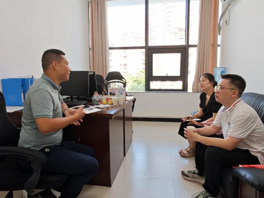 圖為團(tuán)隊(duì)指導(dǎo)教師與南溪區(qū)團(tuán)委副書(shū)記王琦交流。羅雪鷗 供圖