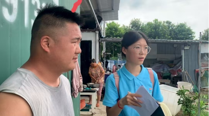(實(shí)踐團(tuán)成員在與養(yǎng)殖戶吧交談 鐘靜供圖)